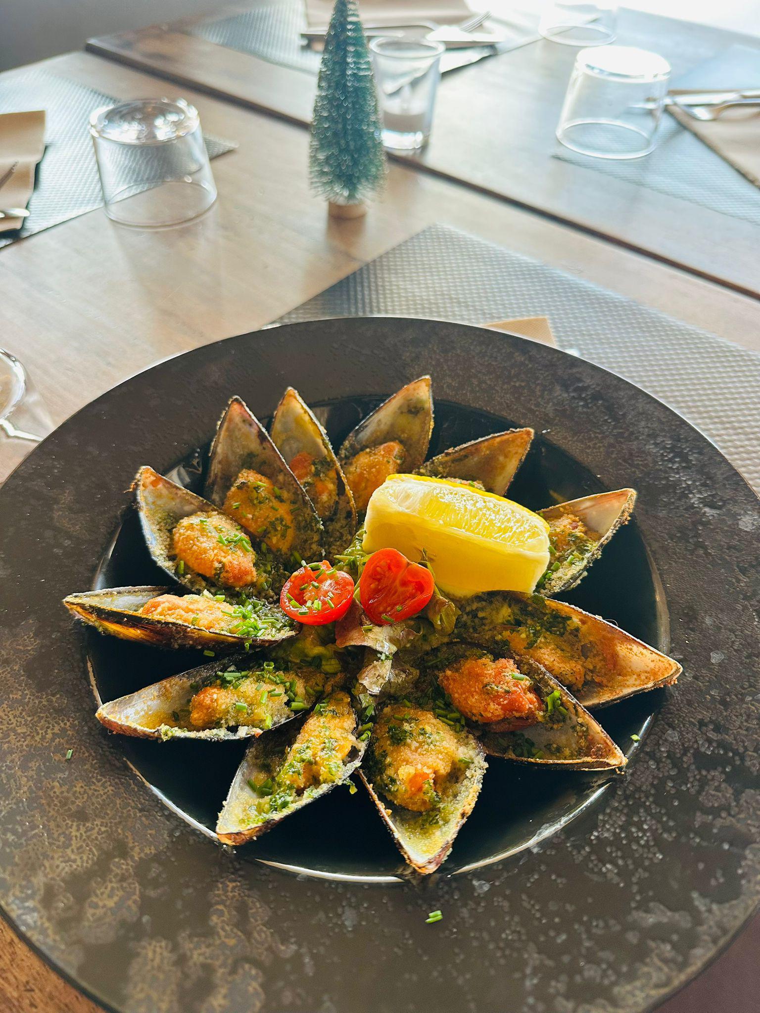 Camembert au feu de bois, pommes de terre grenaille en persillade & charcuterie